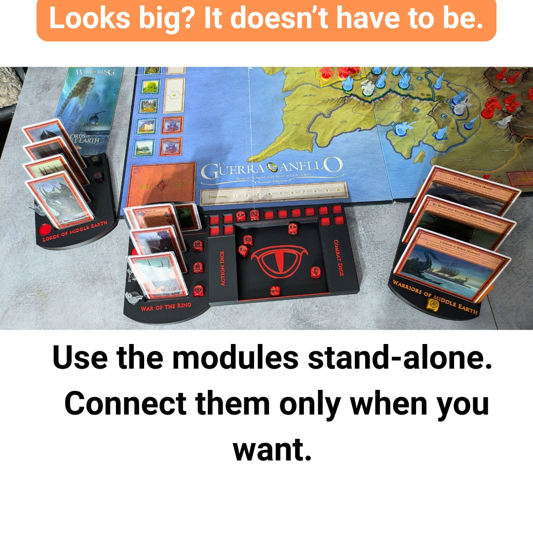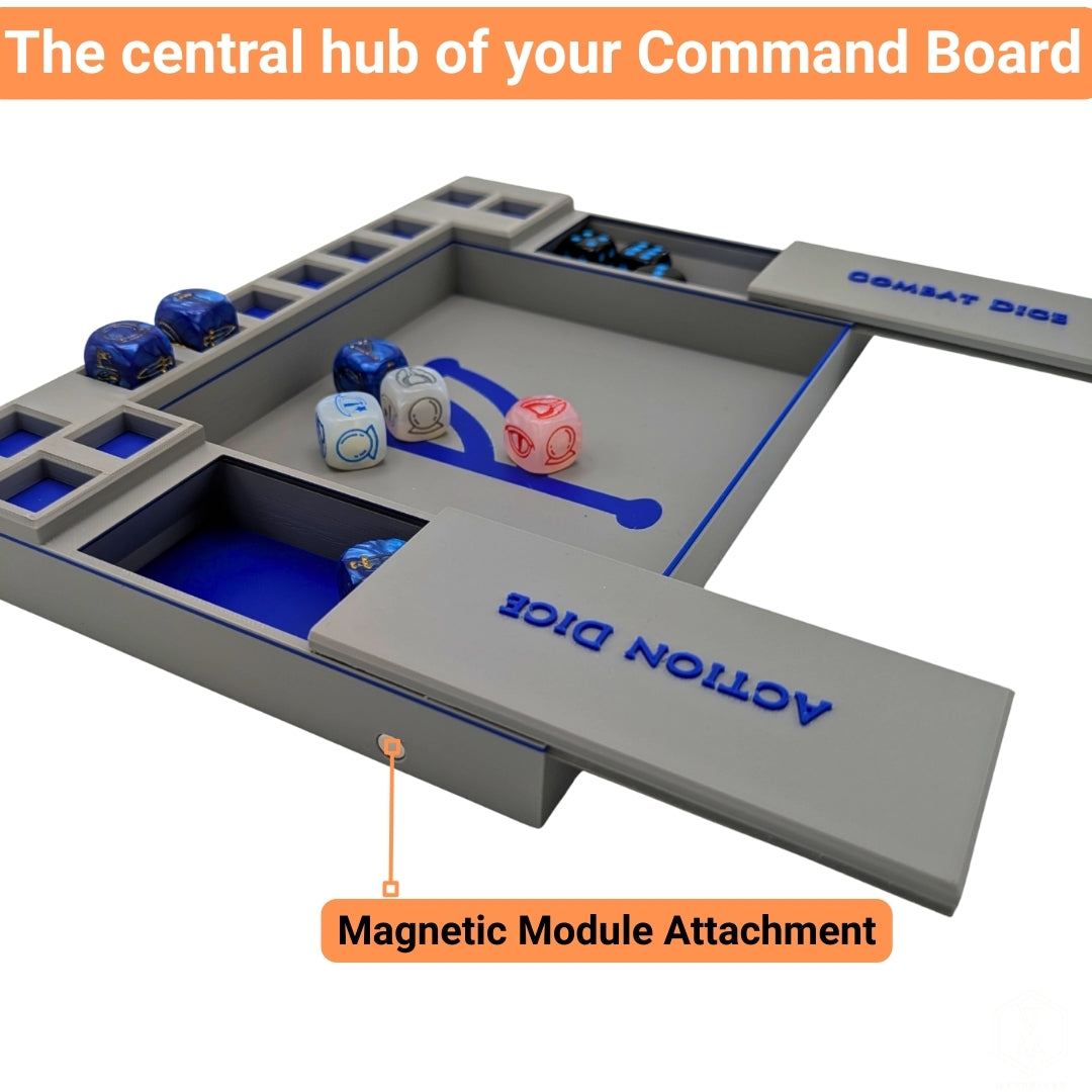 The All-in-One Command Board System is a complete modular solution designed to manage the base game and major expansions in a single, cohesive command area.