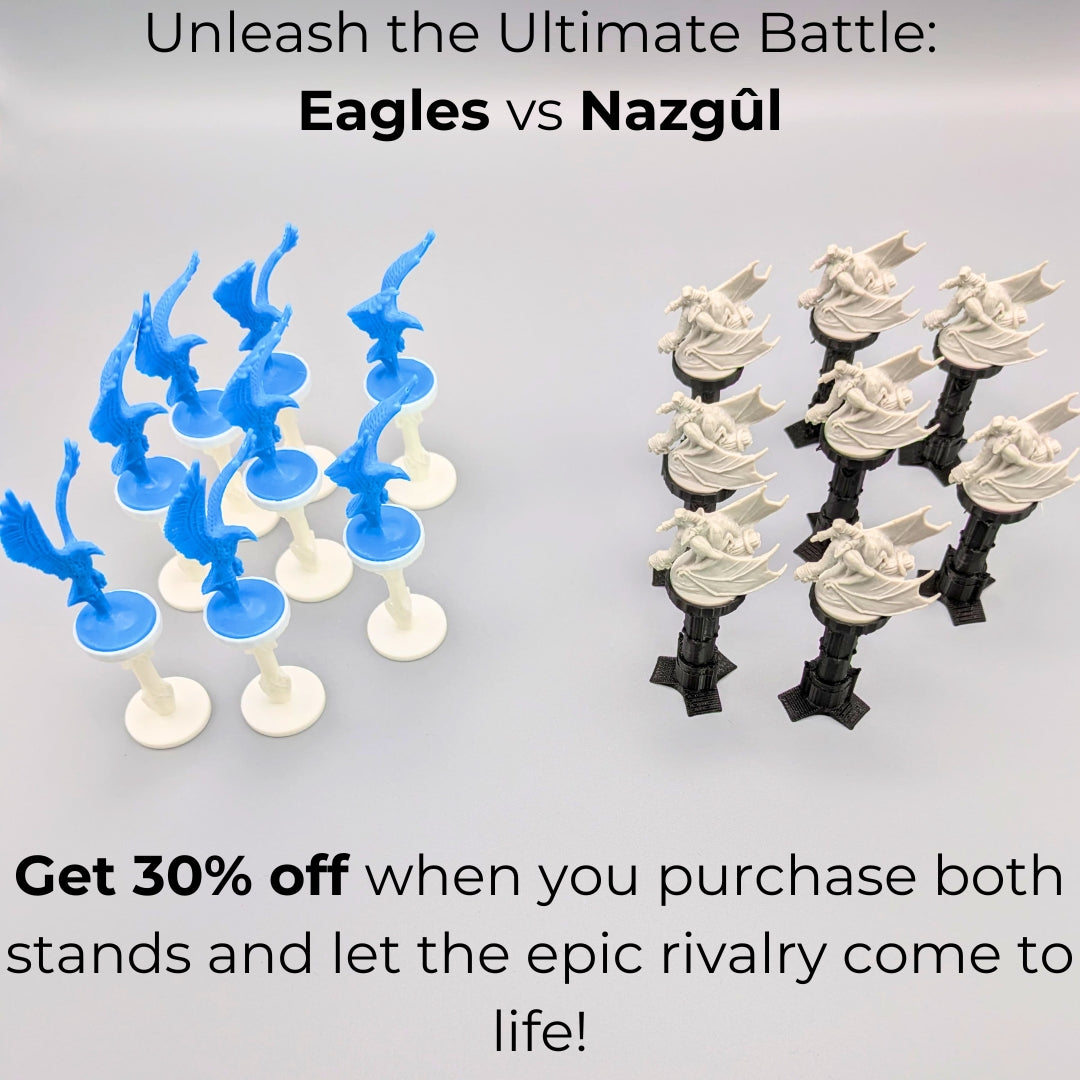 The stands hold each eagle figure aloft, creating the illusion of flight. This enhances immersion and highlights their contrast with the Nazgûl, reinforcing the symbolic clash of light vs darkness.